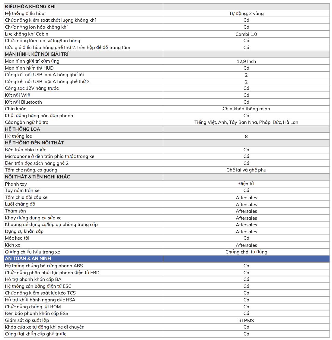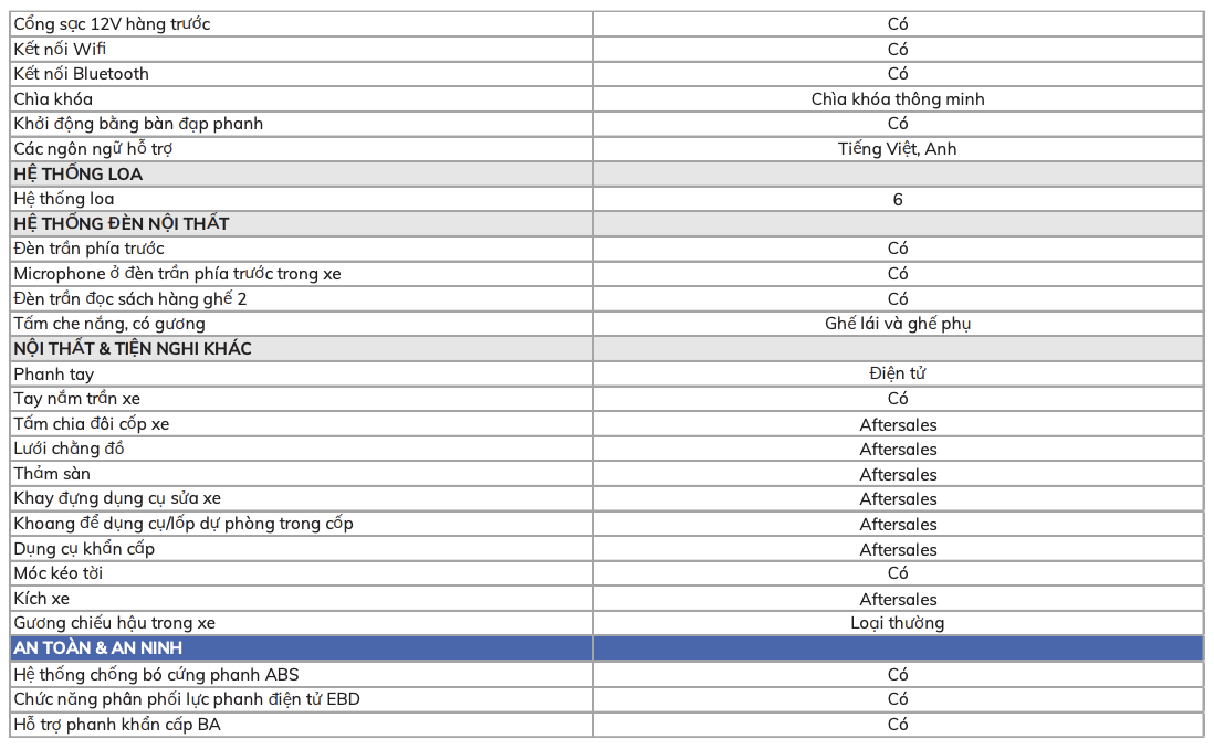 - Mức đánh giá an toàn: ASEAN NCAP 3*