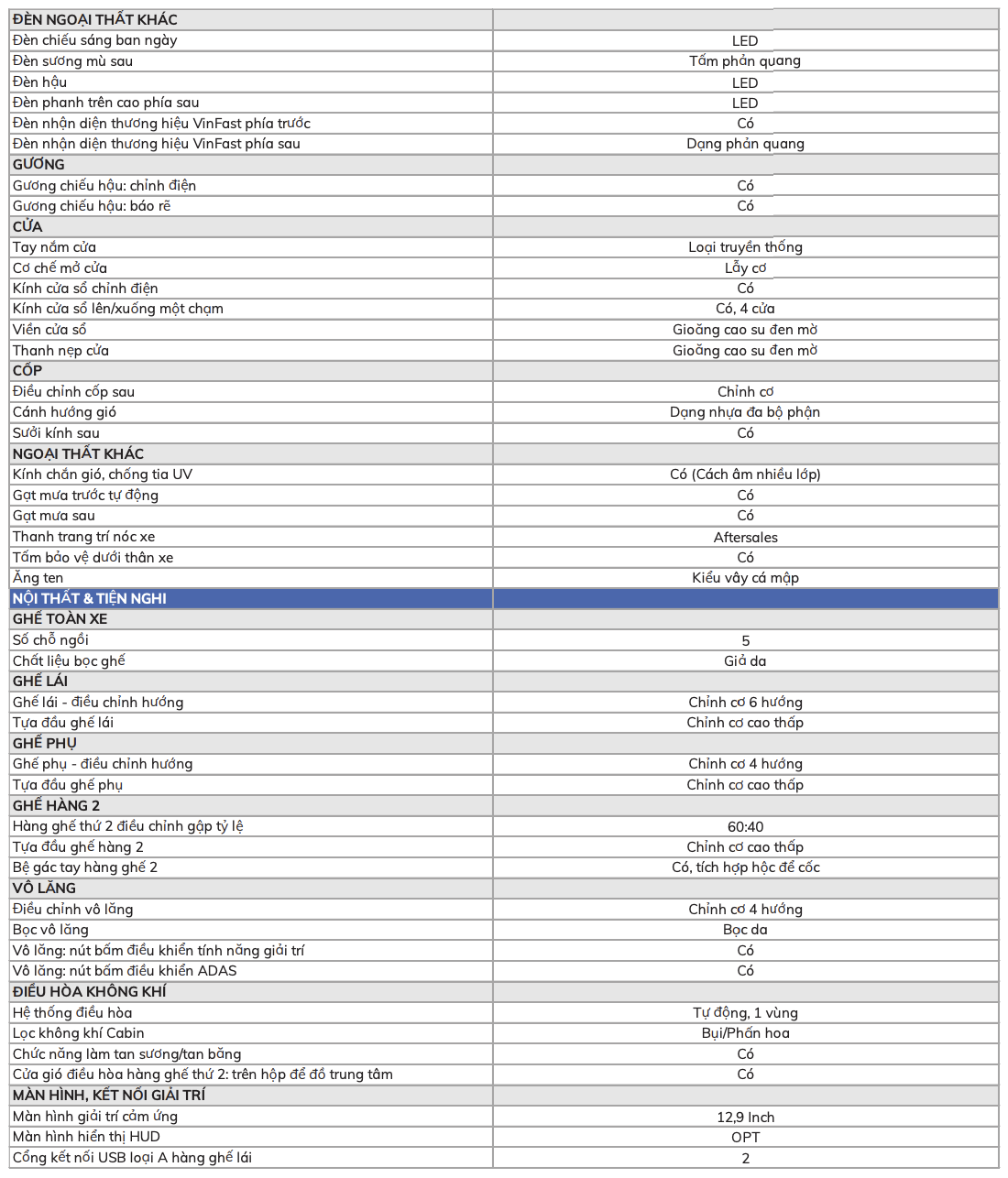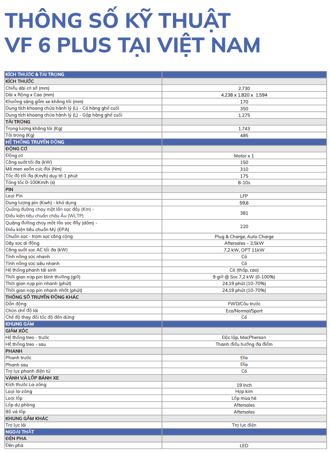 Thông số cơ bản của mẫu xe VF6 Base & VF6 Plus