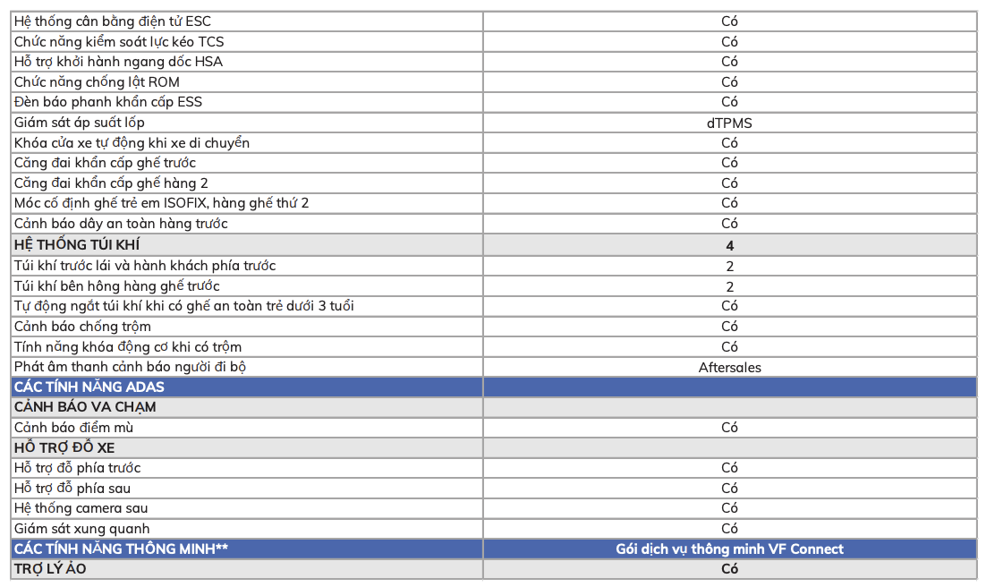 Đặc biệt, đầu năm 2024, phiên bản Plus của VF 6 sẽ được cập nhật phần mềm từ xa và miễn phí cho khách hàng hệ thống hỗ trợ lái xe nâng cao với các tính năng nổi bật như: hỗ trợ di chuyển khi ùn tắc, hỗ trợ lái trên đường cao tốc, hỗ trợ giữ làn và kiểm soát đi giữa làn, giám sát hành trình thích ứng, nhận biết biển báo giao thông, phanh tự động khẩn cấp trước/sau… Các tính năng trên sẽ giúp VinFast có trải nghiệm hỗ trợ lái vượt trội so với phân khúc,giúp người lái thỏa sức trải nghiệm và yên tâm trên mọi hành trình.