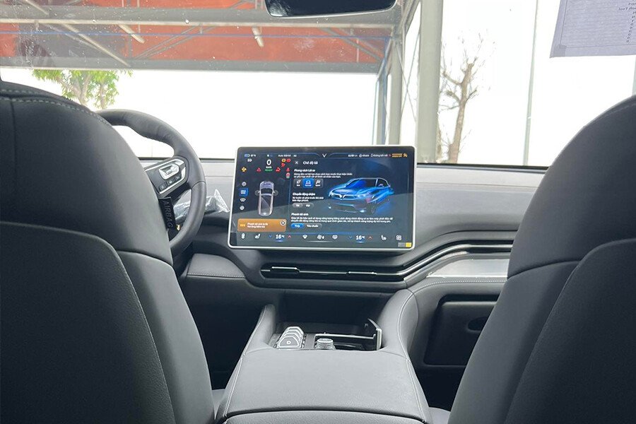 VinFast VF9 đã loại bỏ các nút bấm cơ học trên xe, mọi thao tác sẽ được thực hiện thông qua màn hình cảm ứng khủng 15.4 inch nằm ngang.