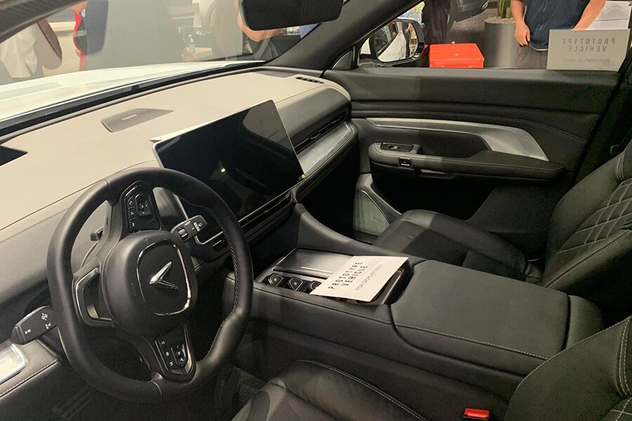 VinFast VF9 rất dễ khiến khách hàng liên tưởng đến những mẫu xe điện Tesla khi không có bảng đồng hồ phía sau vô lăng.